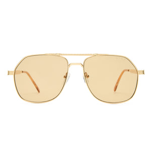 Introducing the Cleobella x AIRE collaboration featuring COSMOS, a classic aviator sunglass with vintage inspired textured detailing across the top bar and temples. COSMOS is a mid size fit featuring adjustable nose pads for fit and comfort. COSMOS is complete with plastic tips featuring the Cleobella foil logo in gold.